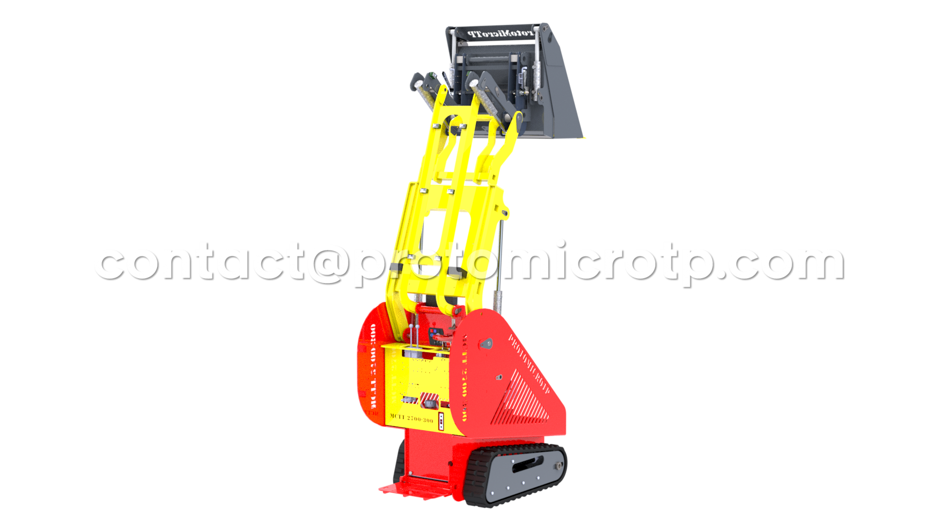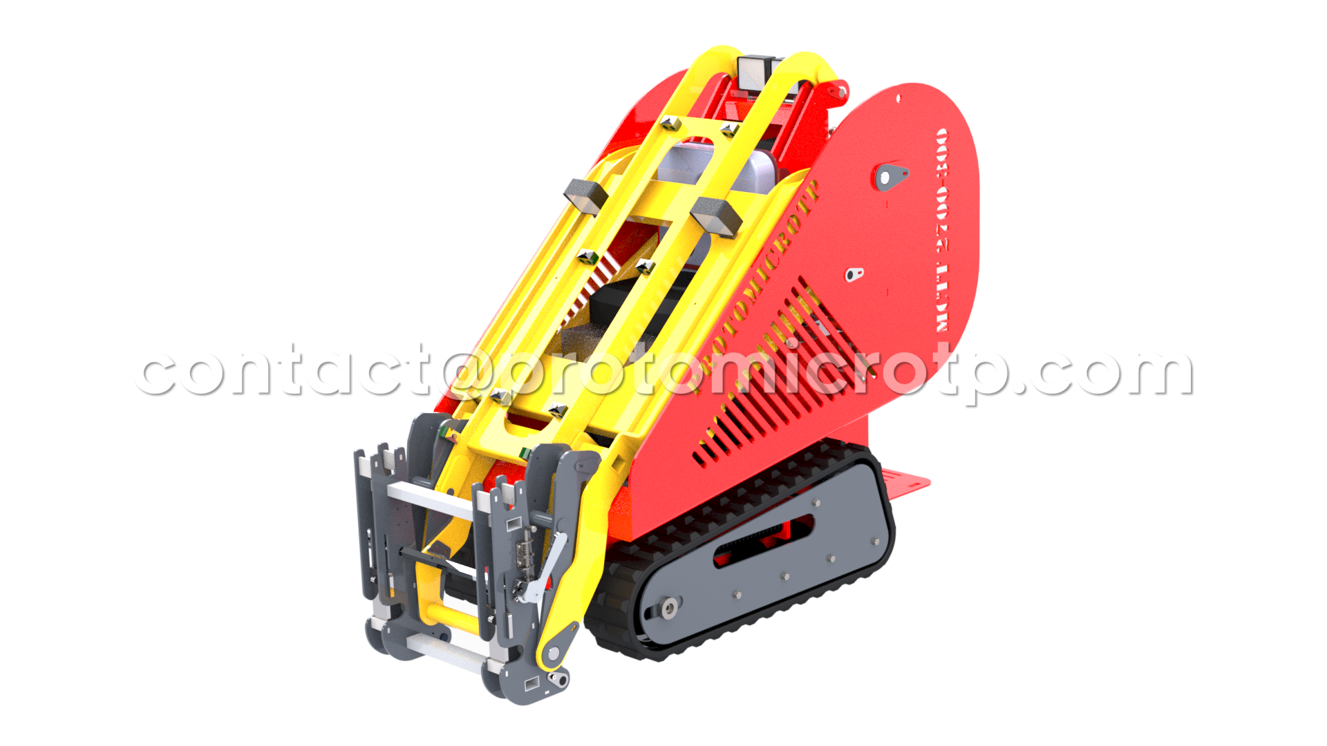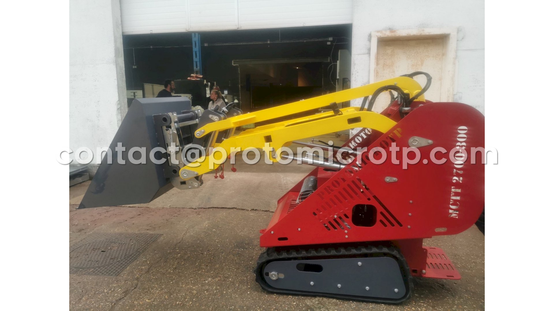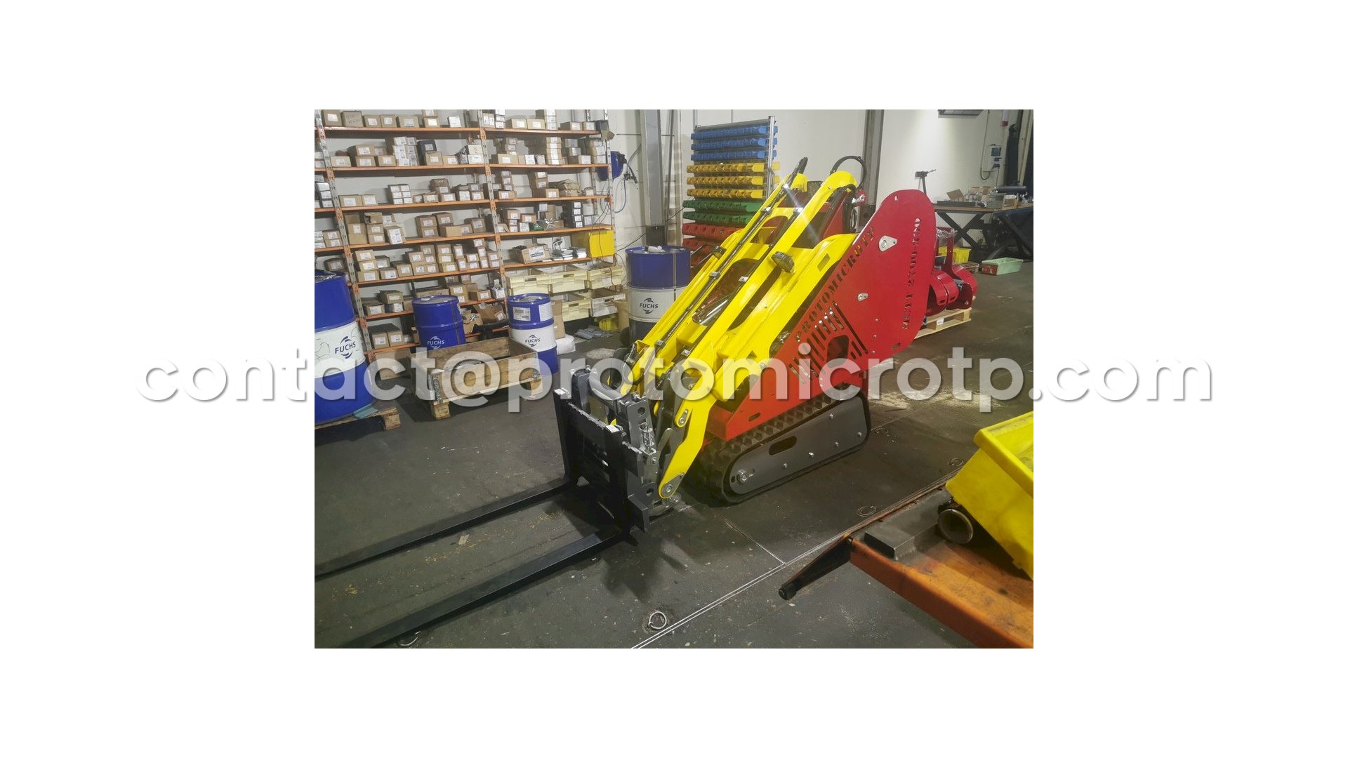 PROTOMICROTP est fier de vous présenter le Micro-Chargeur MCTT 2700-300. Avec une largeur de 85 cm, ce modèle, élaboré dans nos ateliers, répond à une demande de polyvalence : charger, niveler, lever des charges, transporter, déblayer, et bien plus encore.