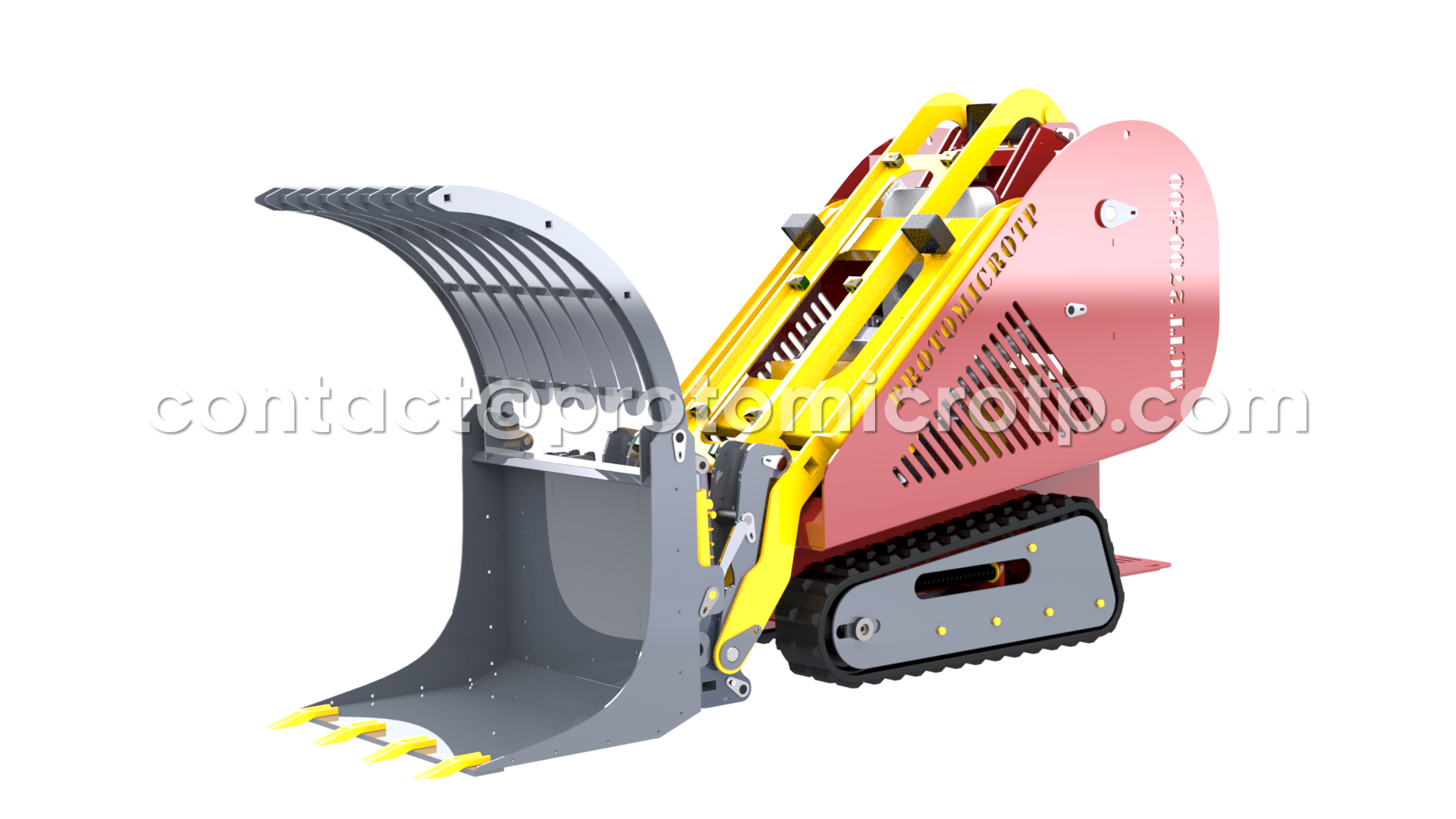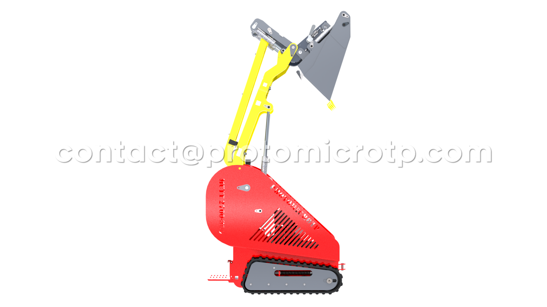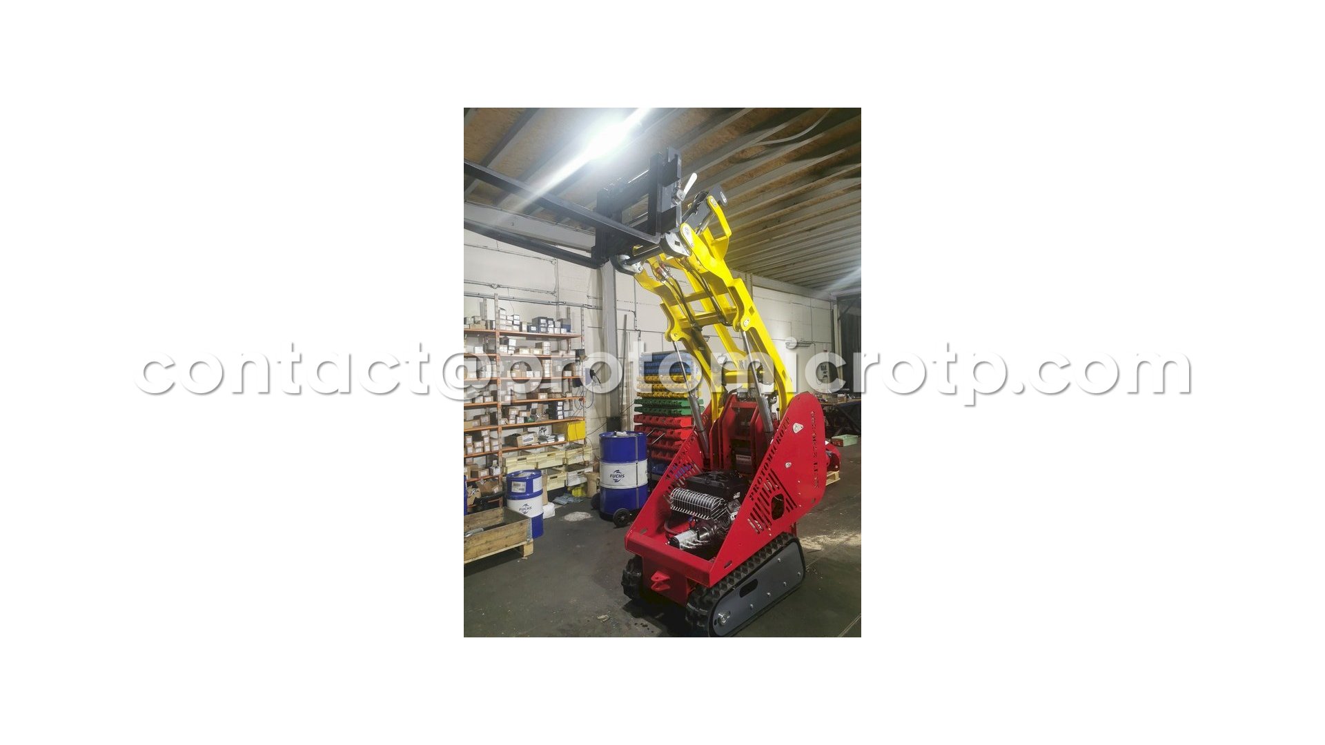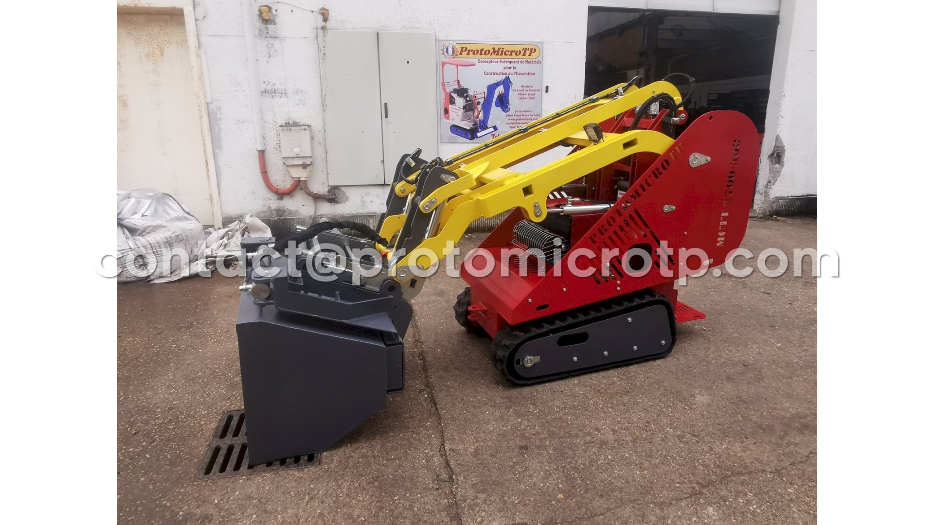 PROTOMICROTP est fier de vous présenter le Micro-Chargeur MCTT 2700-300. Avec une largeur de 85 cm, ce modèle, élaboré dans nos ateliers, répond à une demande de polyvalence : charger, niveler, lever des charges, transporter, déblayer, et bien plus encore.
