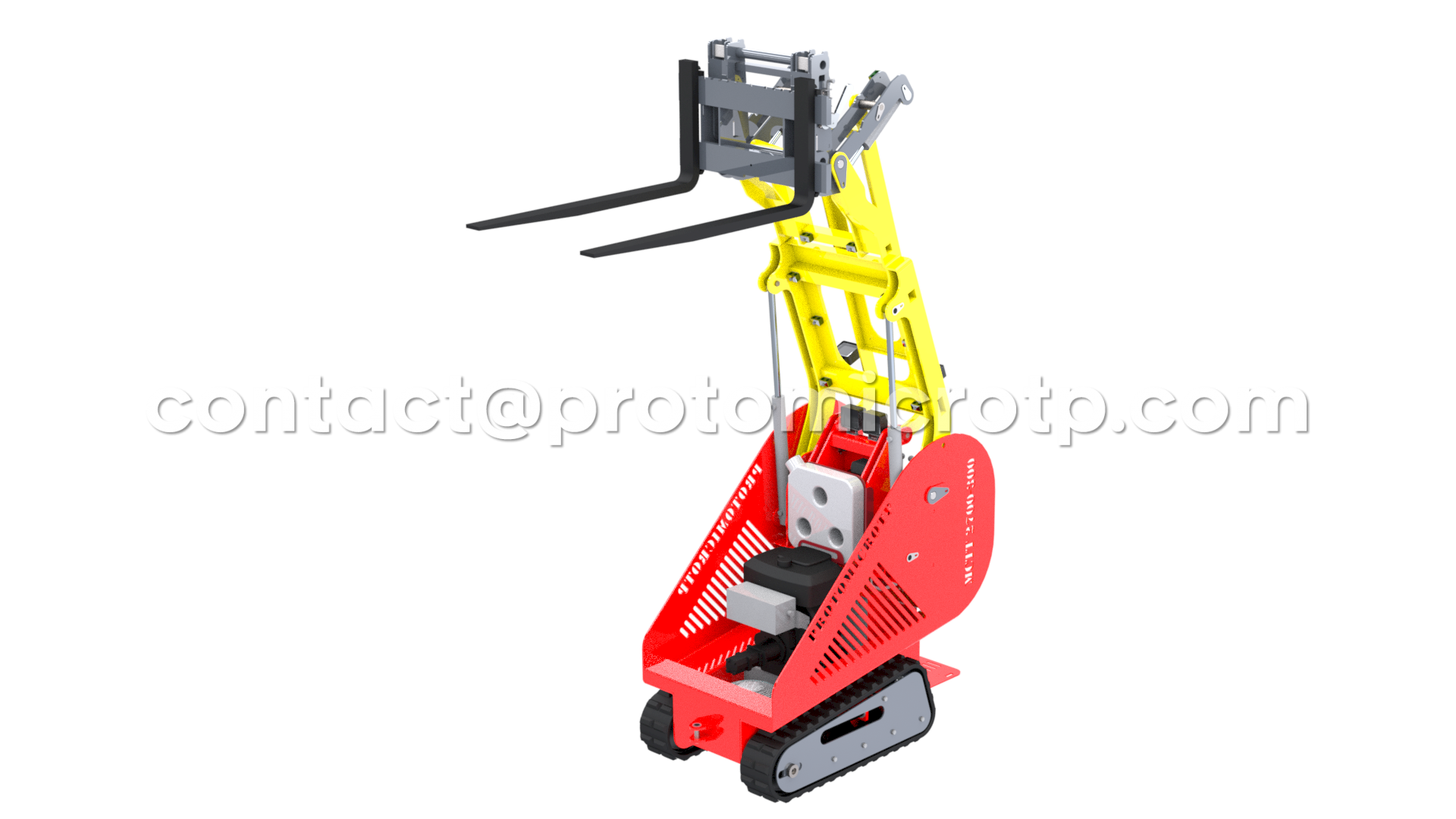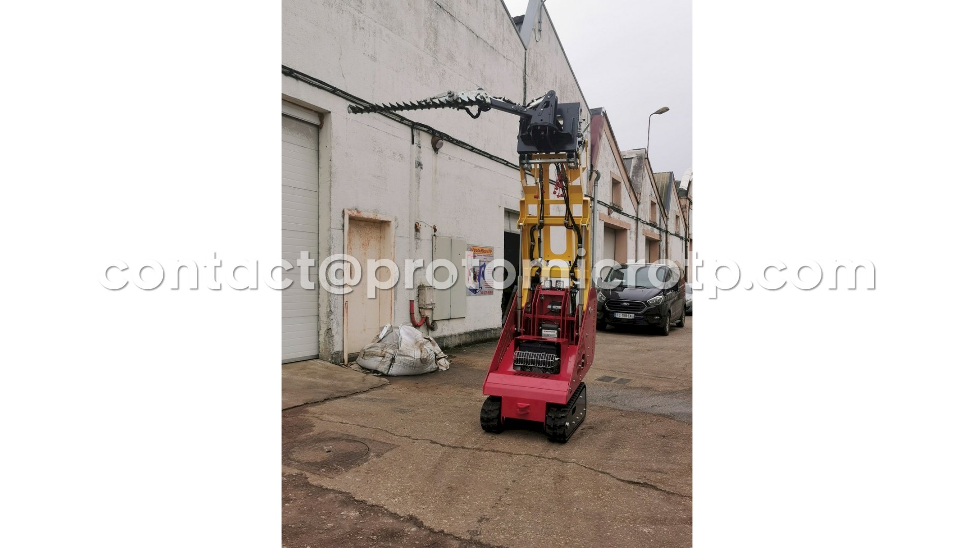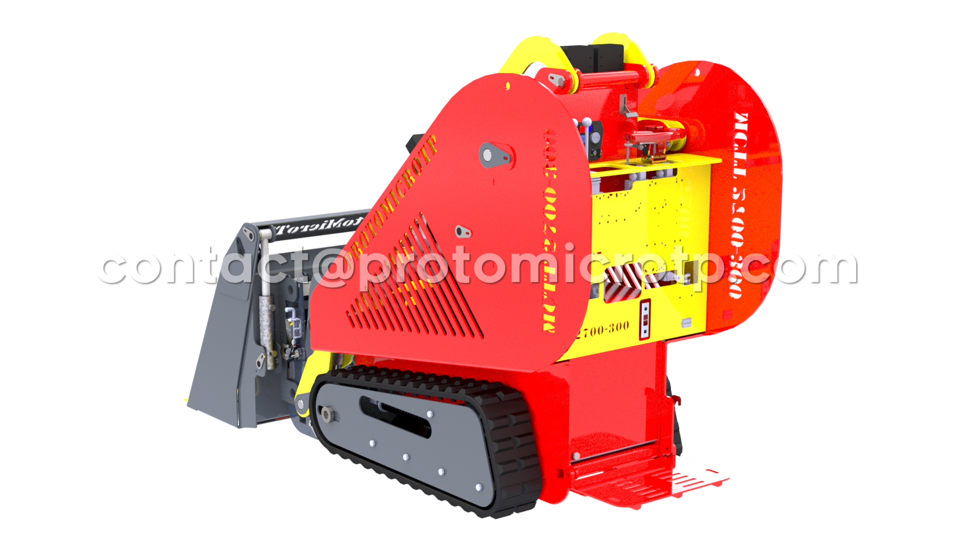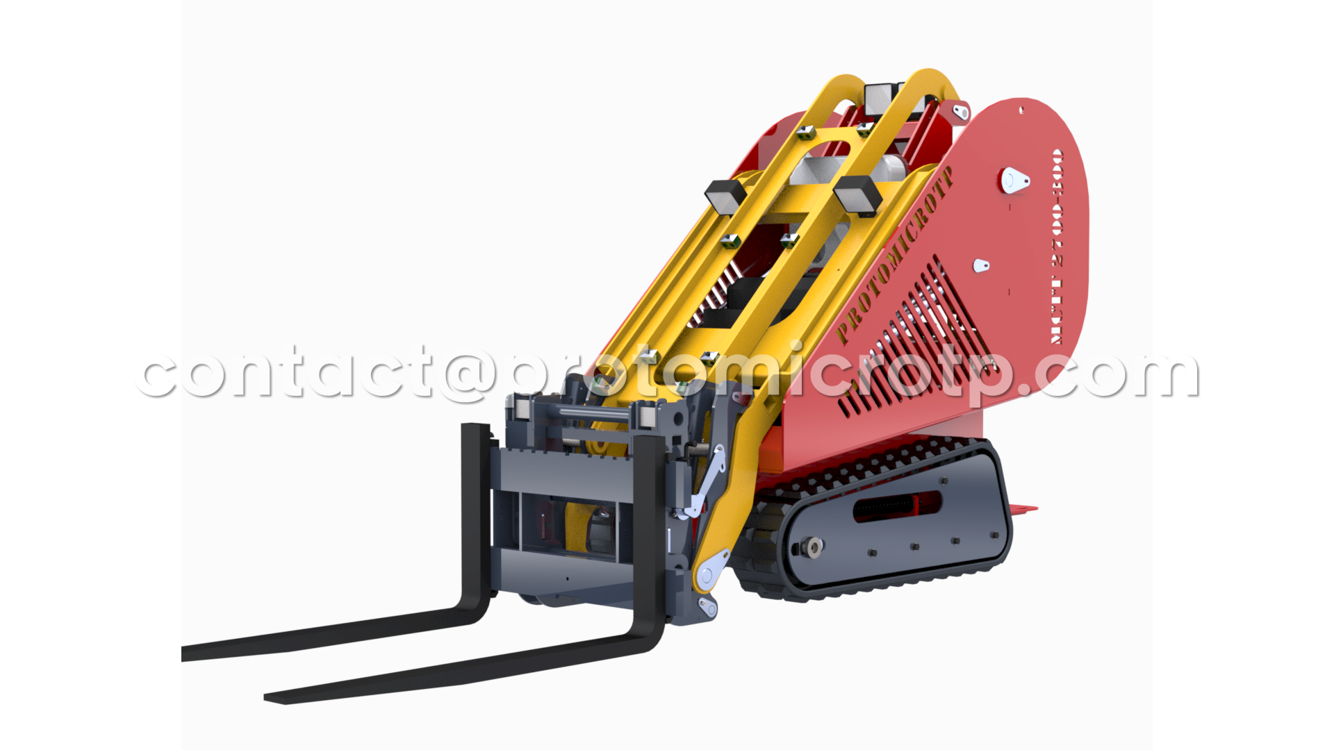 PROTOMICROTP est fier de vous présenter le Micro-Chargeur MCTT 2700-300. Avec une largeur de 85 cm, ce modèle, élaboré dans nos ateliers, répond à une demande de polyvalence : charger, niveler, lever des charges, transporter, déblayer, et bien plus encore.