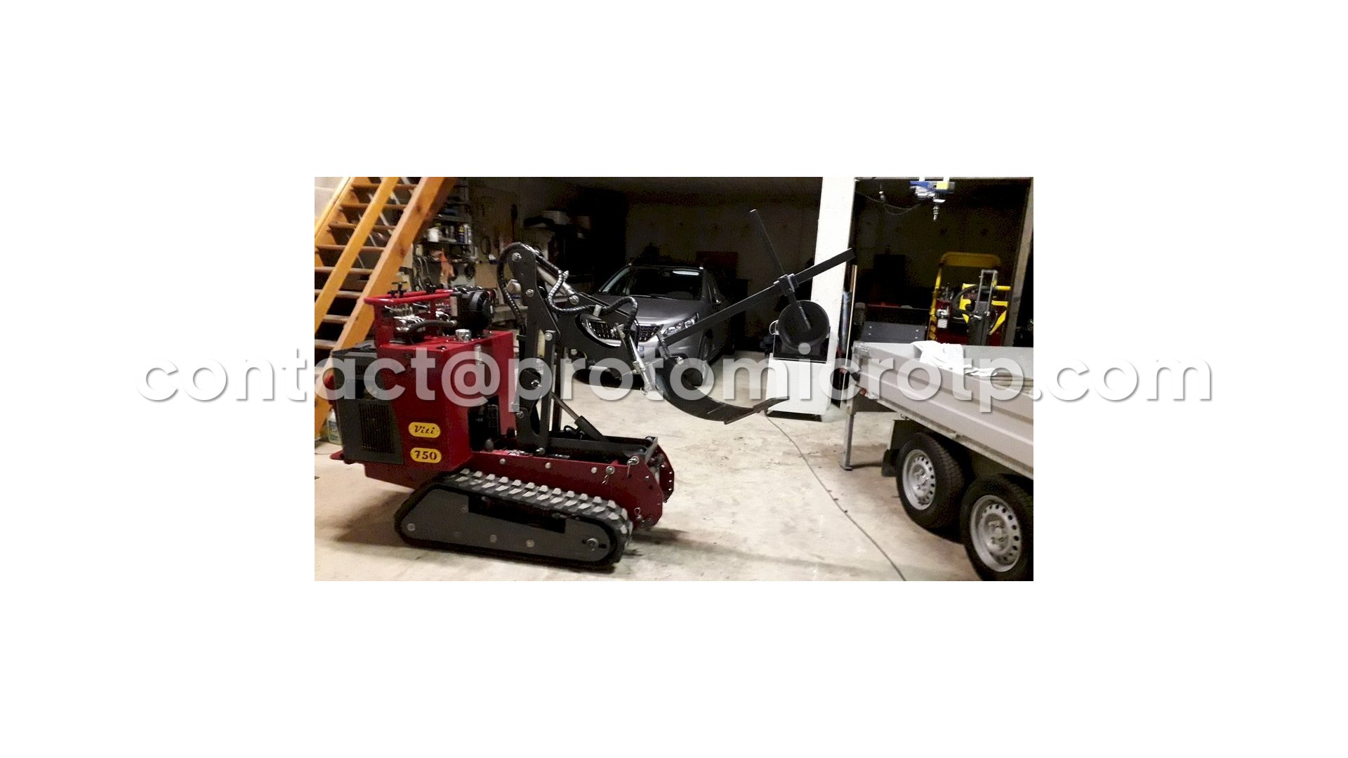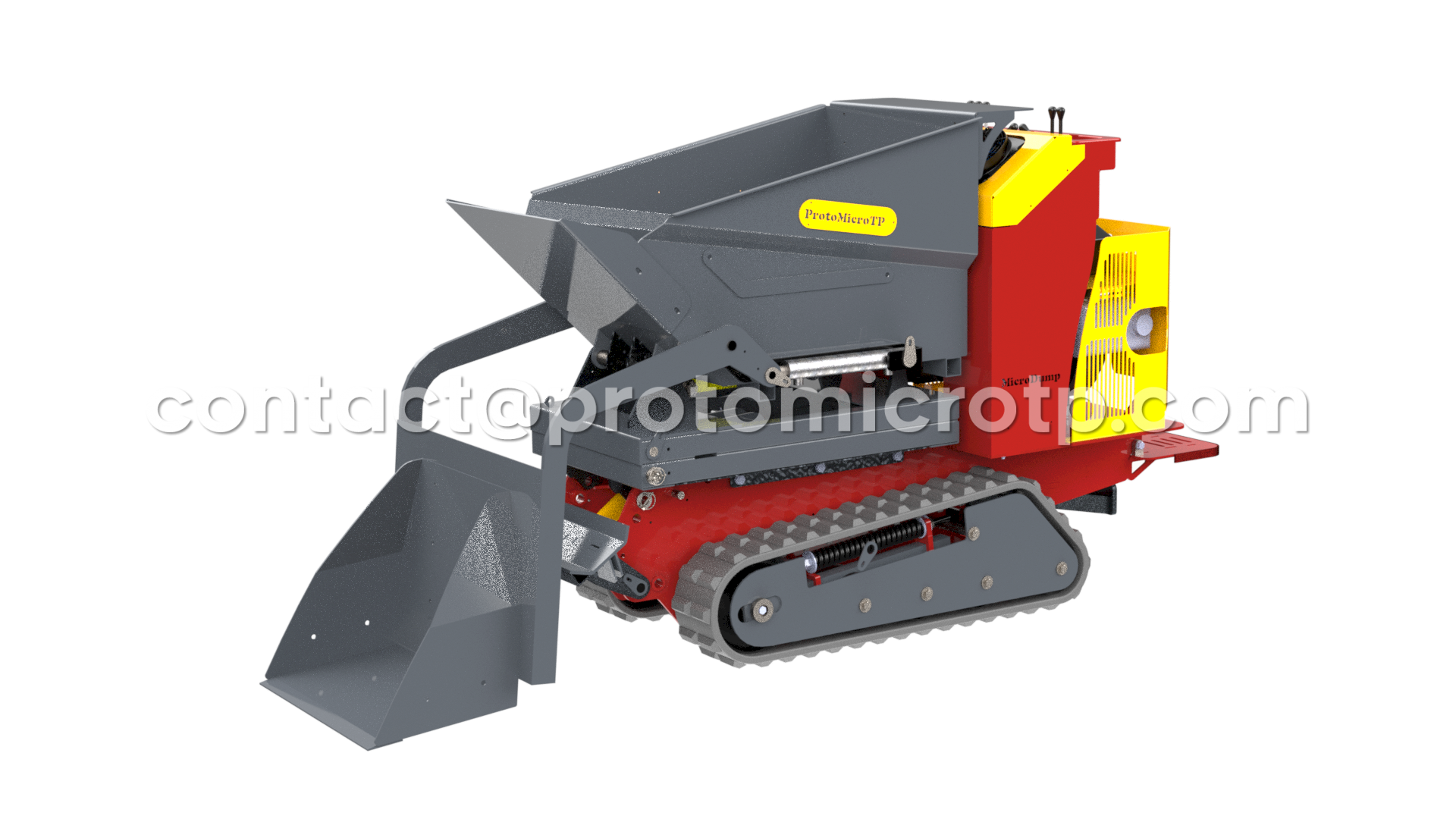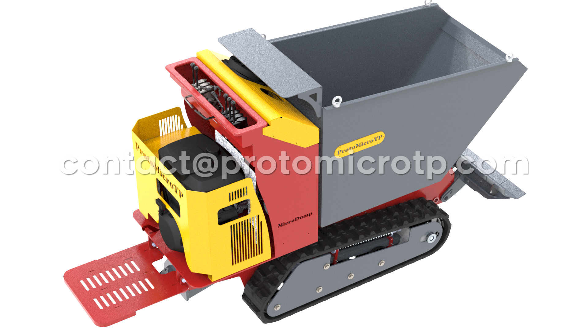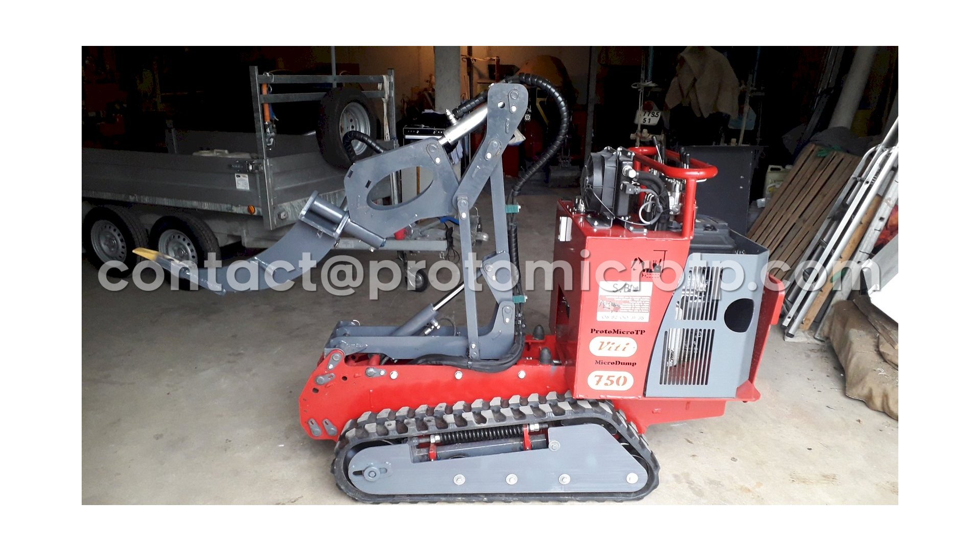 Le Dumper  750 kg  " MicroDump' 750 Etroit" , est une brouette à chenilles pouvant aller sur touts types de terrains, sa capacité de charge lui permet de prendre jusqu'a 750 kg  et de déverser son contenu par bennage hydraulique, il permet de charger ou décharger des charges jusqu’a une hauteur de 1,40m grâce à son élévatrice optionnelle, son train de chenilles adapté aux fortes pentes et ses dimensions restreintes le rend idéale pour des traveaux exigus ou à faible passage.