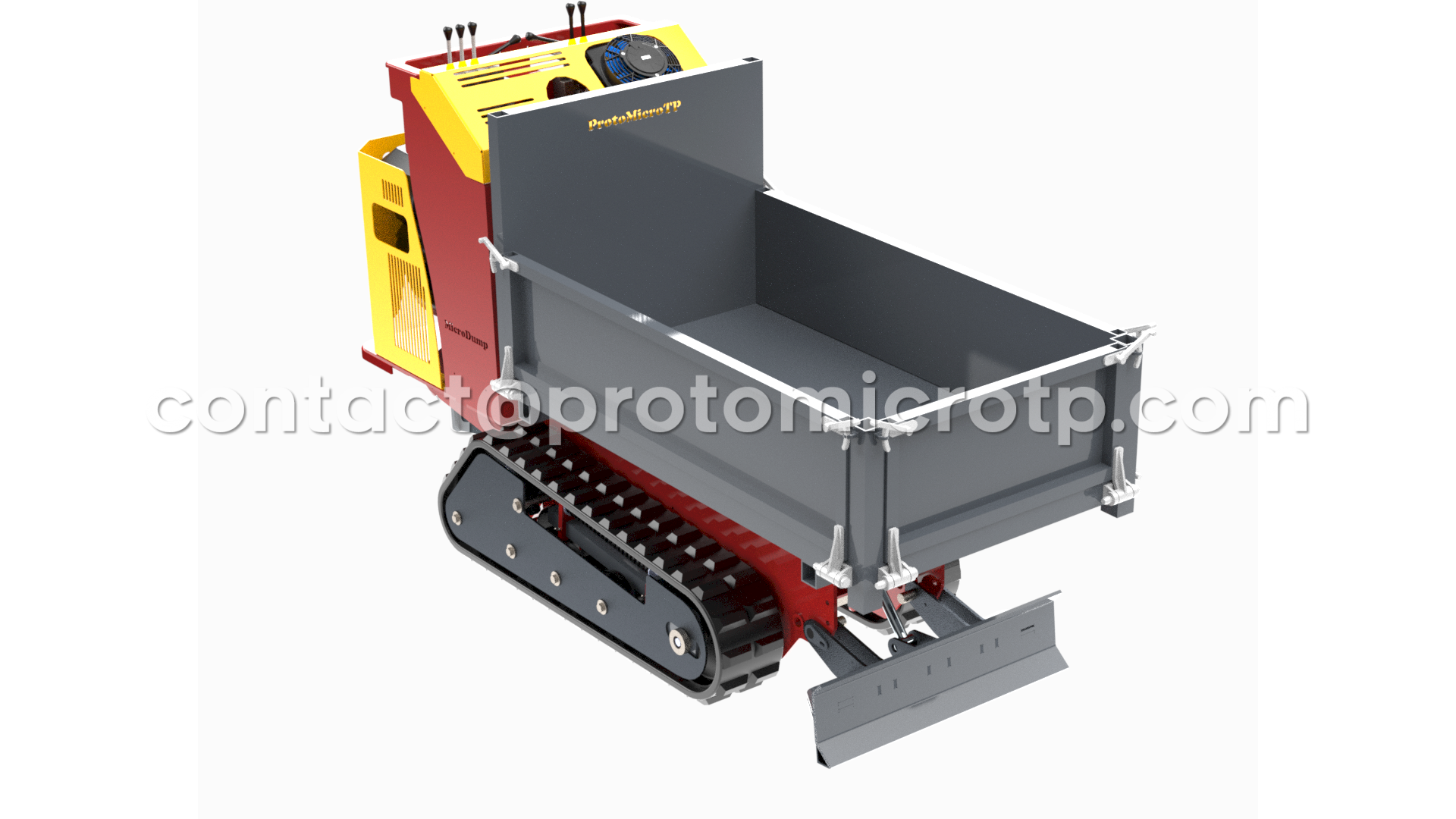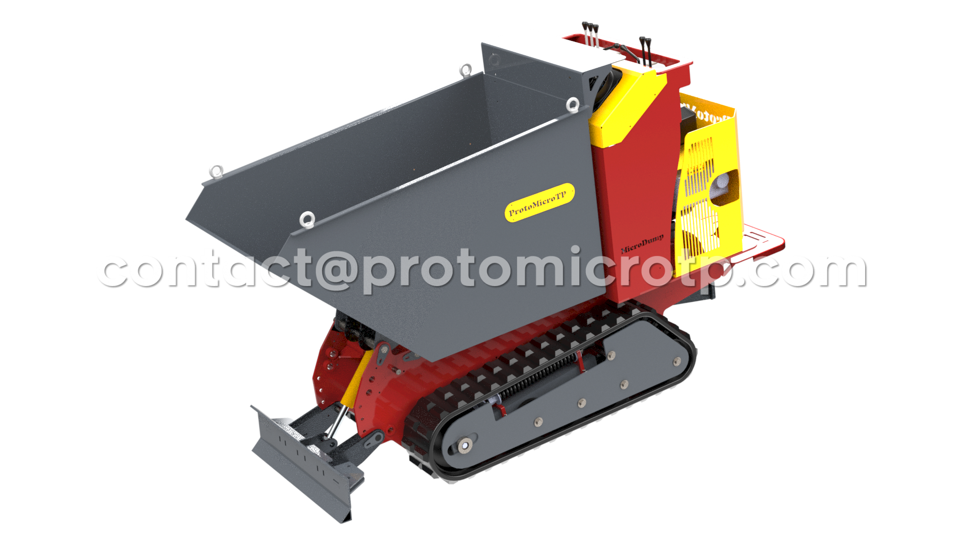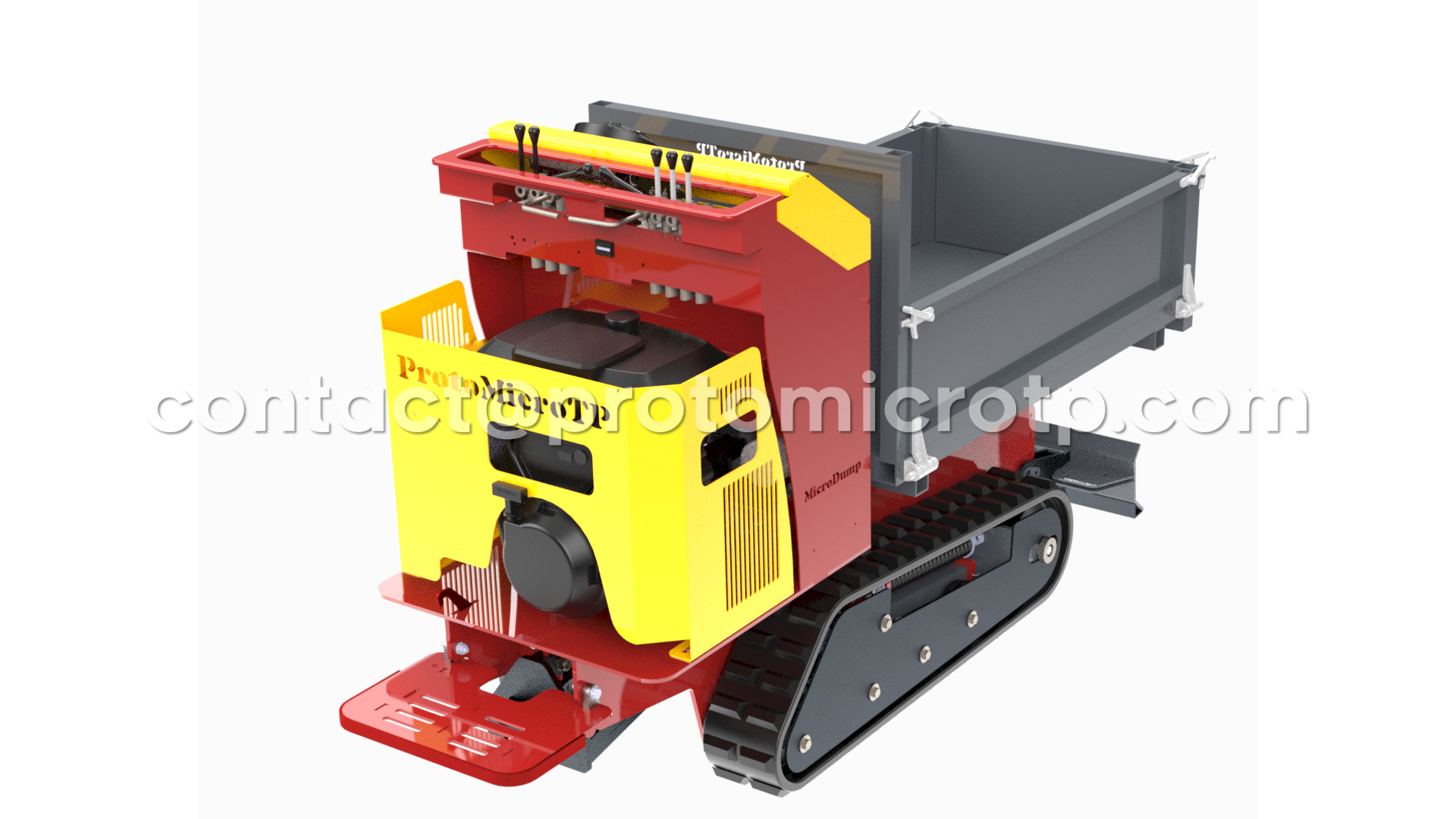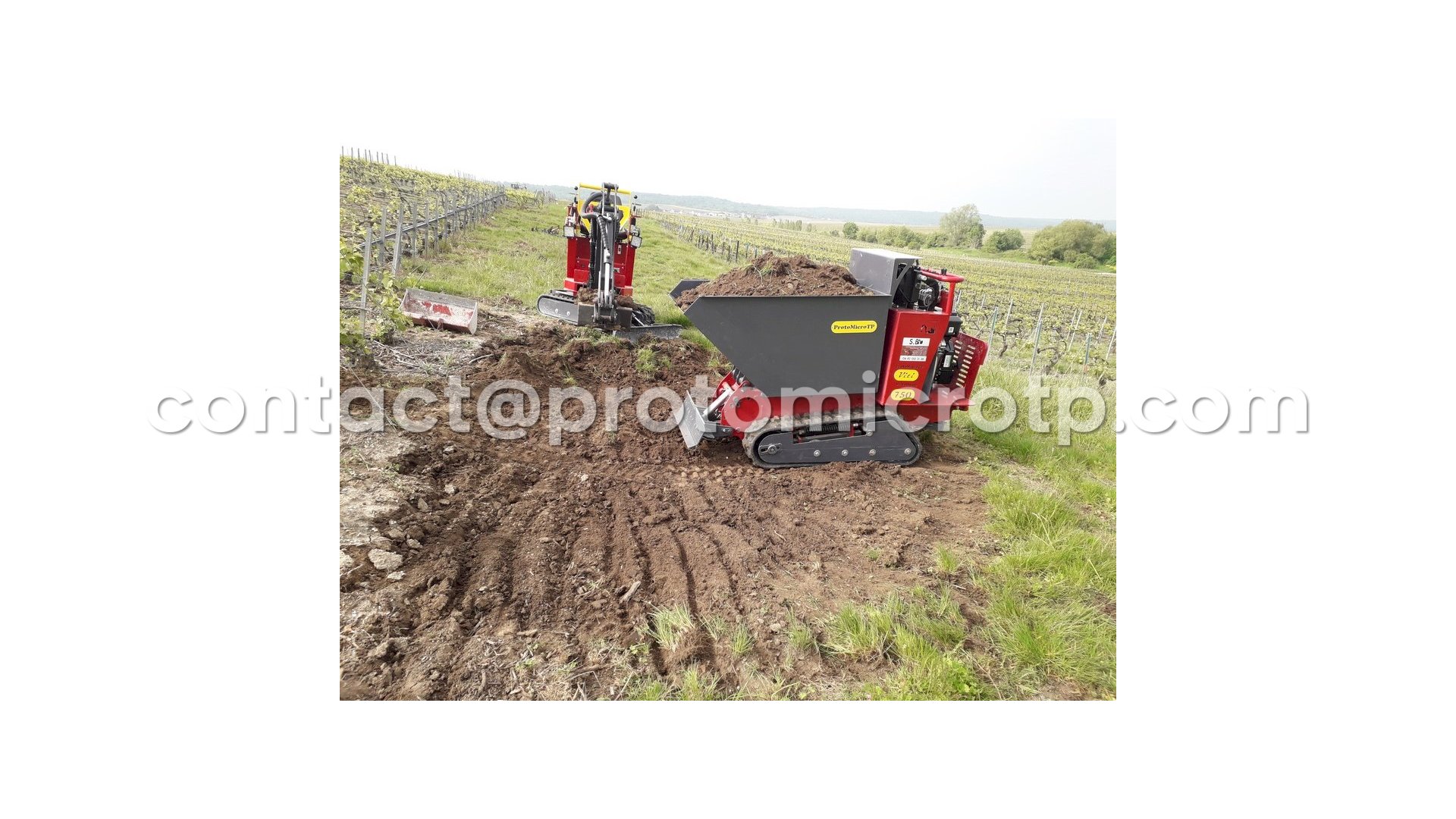 Le Dumper  750 kg  " MicroDump' 750 Etroit" , est une brouette à chenilles pouvant aller sur touts types de terrains, sa capacité de charge lui permet de prendre jusqu'a 750 kg  et de déverser son contenu par bennage hydraulique, il permet de charger ou décharger des charges jusqu’a une hauteur de 1,40m grâce à son élévatrice optionnelle, son train de chenilles adapté aux fortes pentes et ses dimensions restreintes le rend idéale pour des traveaux exigus ou à faible passage.