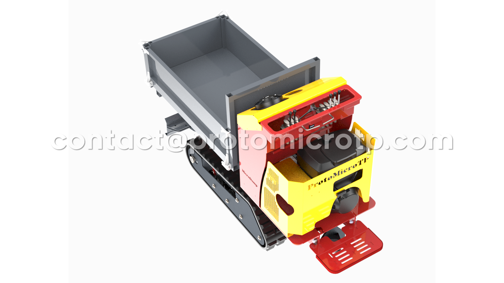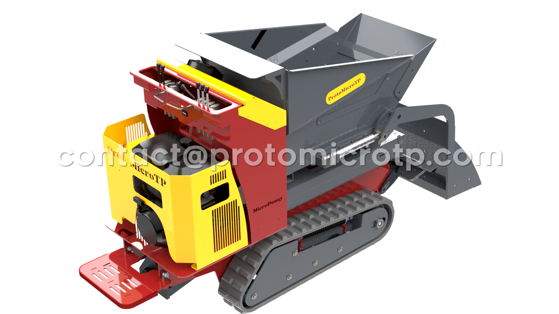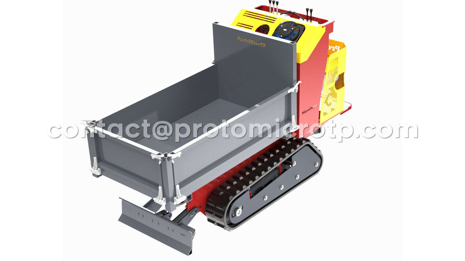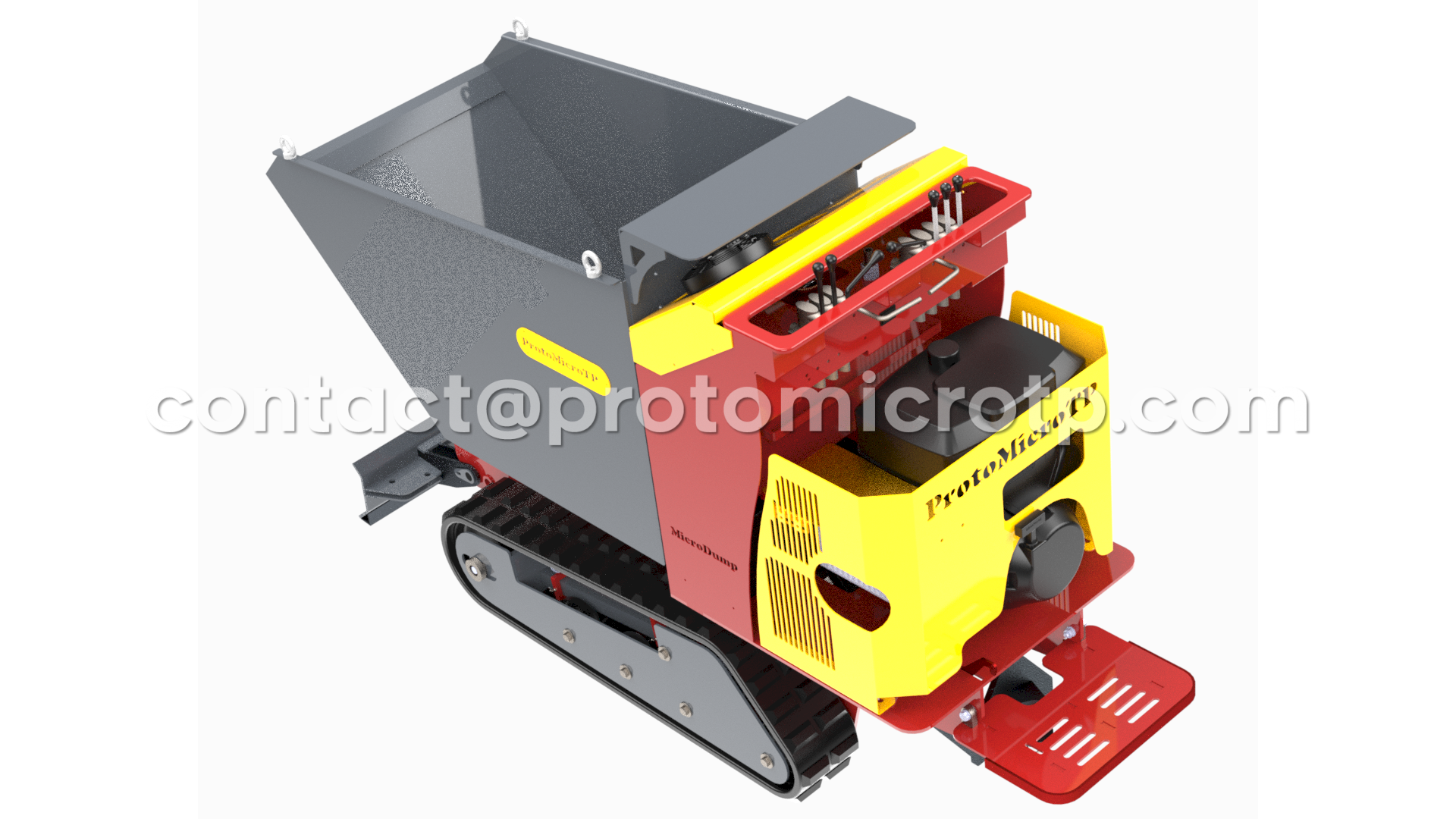 Le Dumper  750 kg  " MicroDump' 750 Etroit" , est une brouette à chenilles pouvant aller sur touts types de terrains, sa capacité de charge lui permet de prendre jusqu'a 750 kg  et de déverser son contenu par bennage hydraulique, il permet de charger ou décharger des charges jusqu’a une hauteur de 1,40m grâce à son élévatrice optionnelle, son train de chenilles adapté aux fortes pentes et ses dimensions restreintes le rend idéale pour des traveaux exigus ou à faible passage.