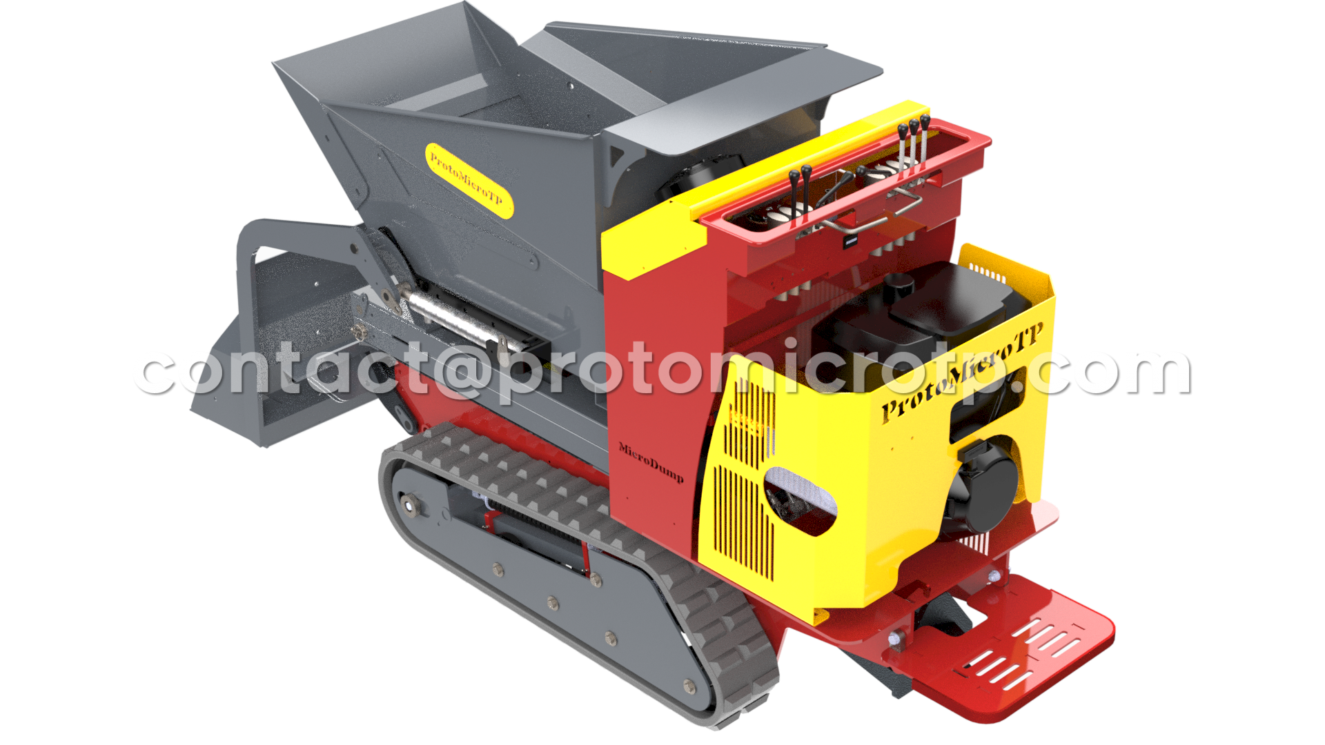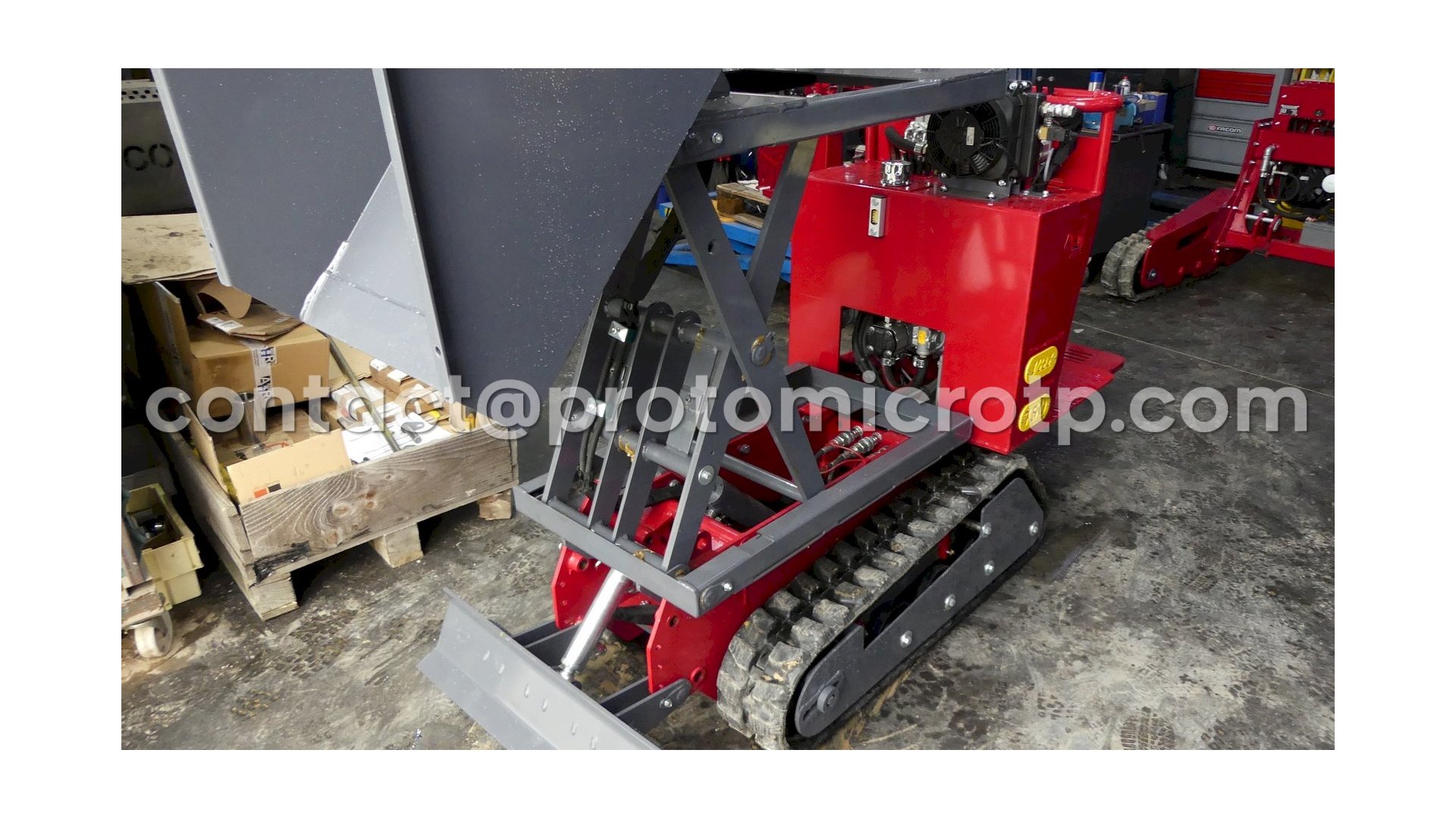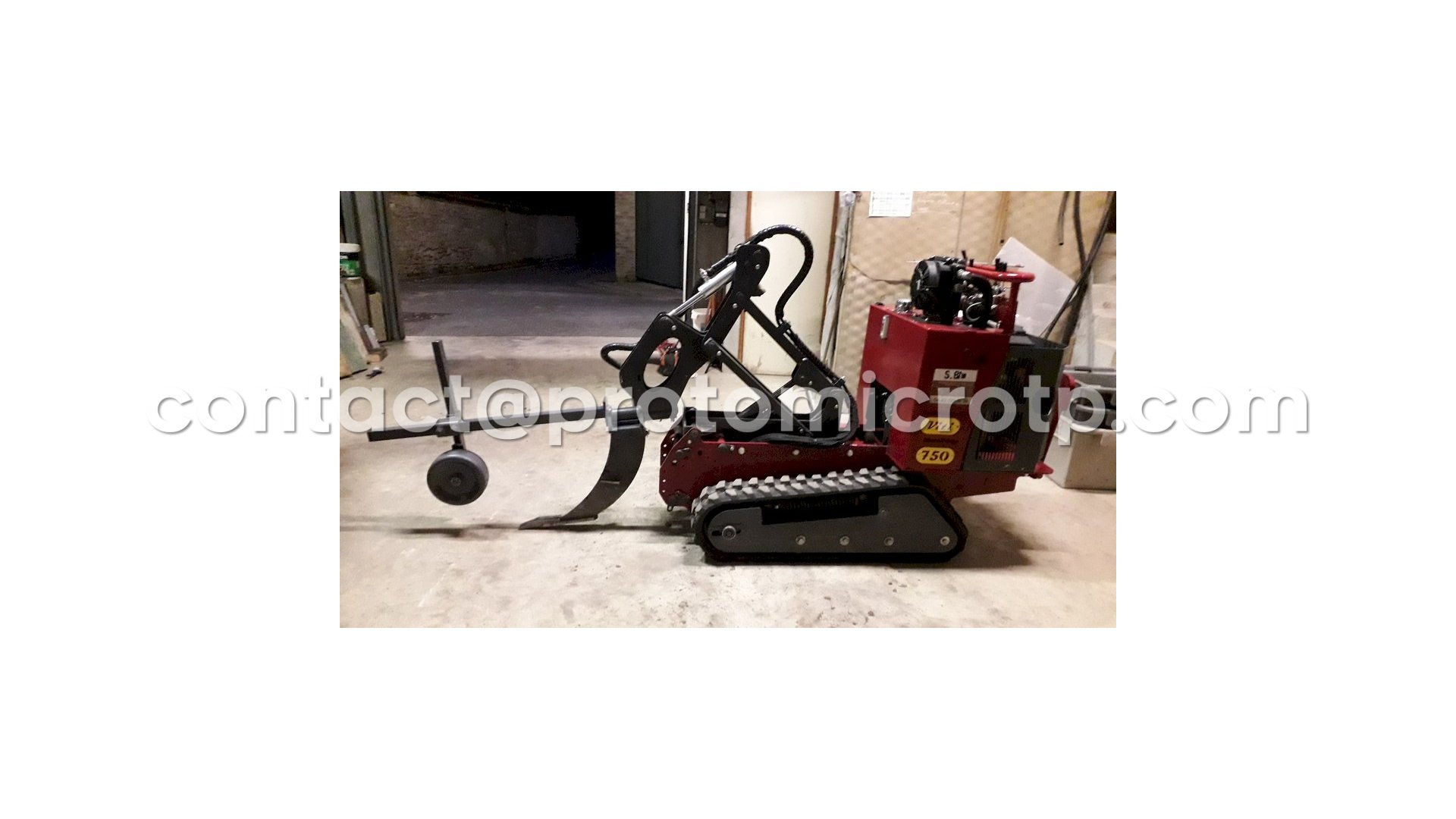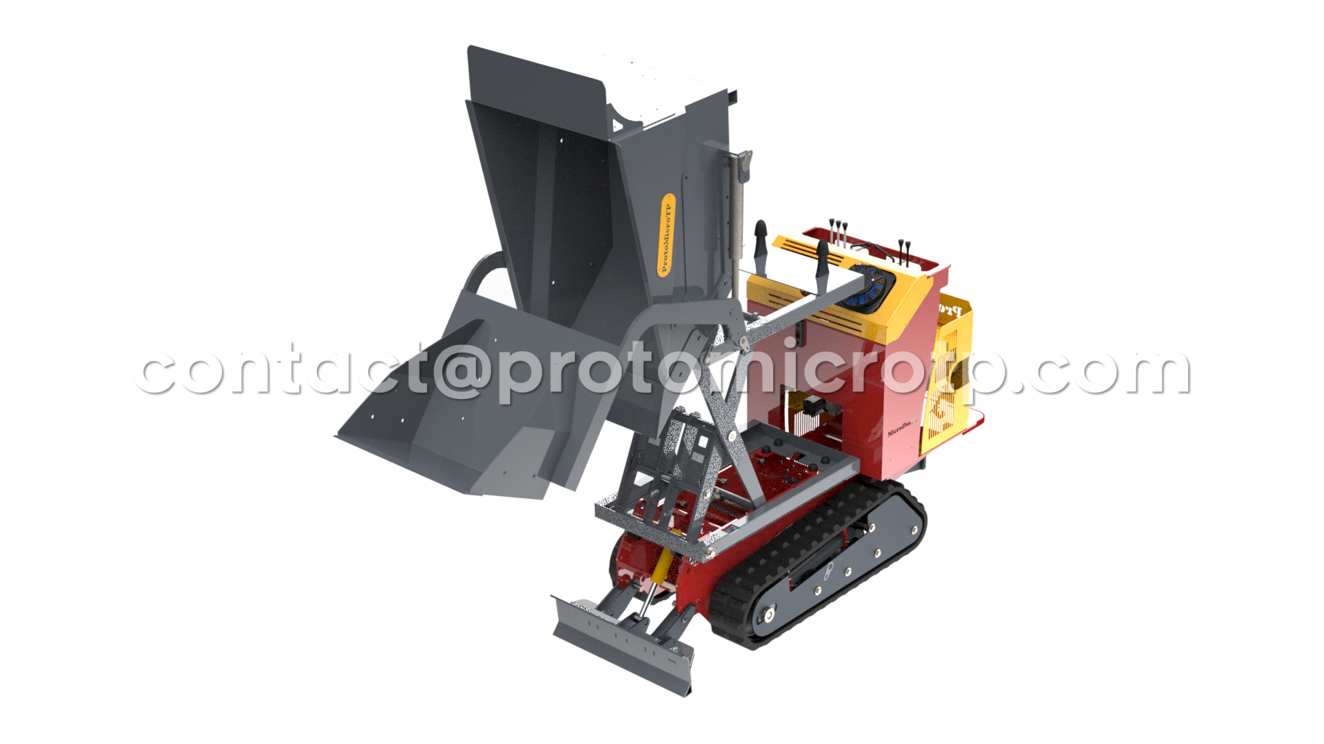 Le Dumper  750 kg  " MicroDump' 750 Etroit" , est une brouette à chenilles pouvant aller sur touts types de terrains, sa capacité de charge lui permet de prendre jusqu'a 750 kg  et de déverser son contenu par bennage hydraulique, il permet de charger ou décharger des charges jusqu’a une hauteur de 1,40m grâce à son élévatrice optionnelle, son train de chenilles adapté aux fortes pentes et ses dimensions restreintes le rend idéale pour des traveaux exigus ou à faible passage.