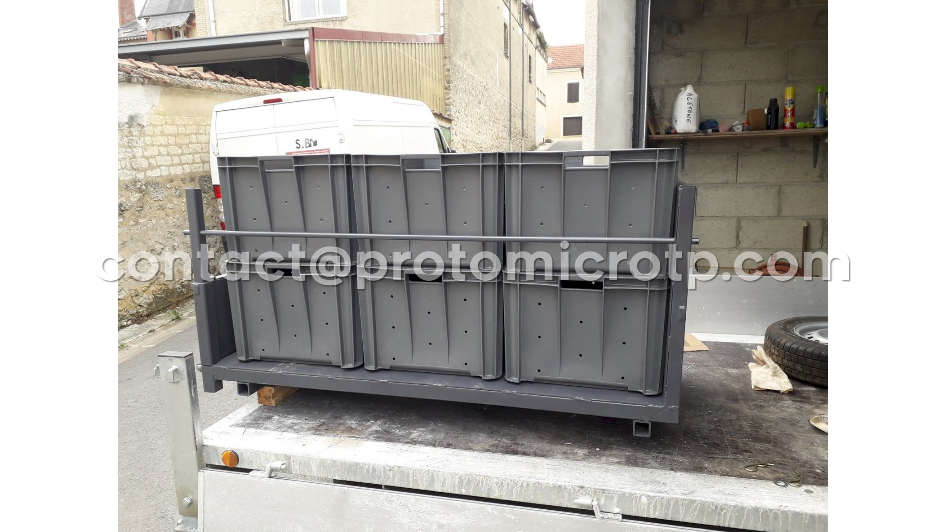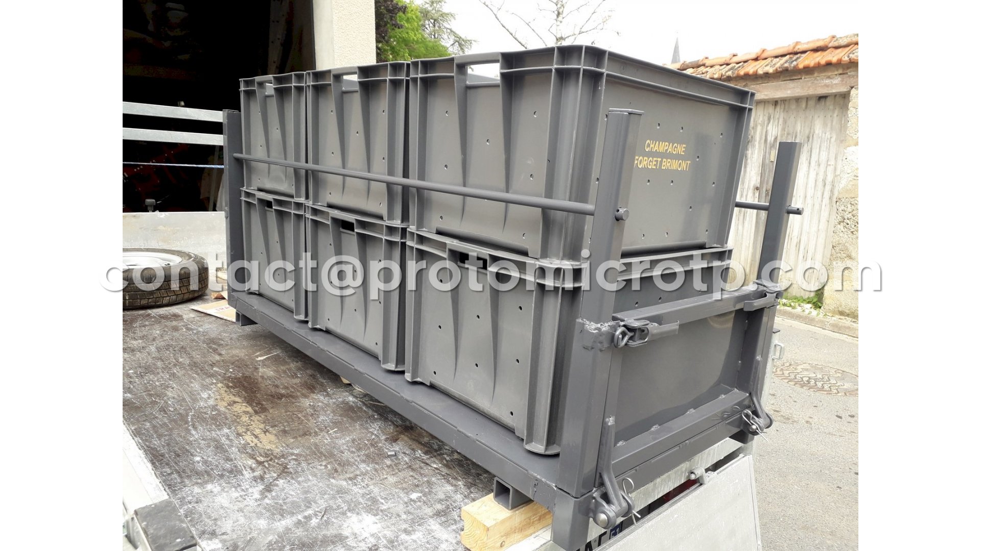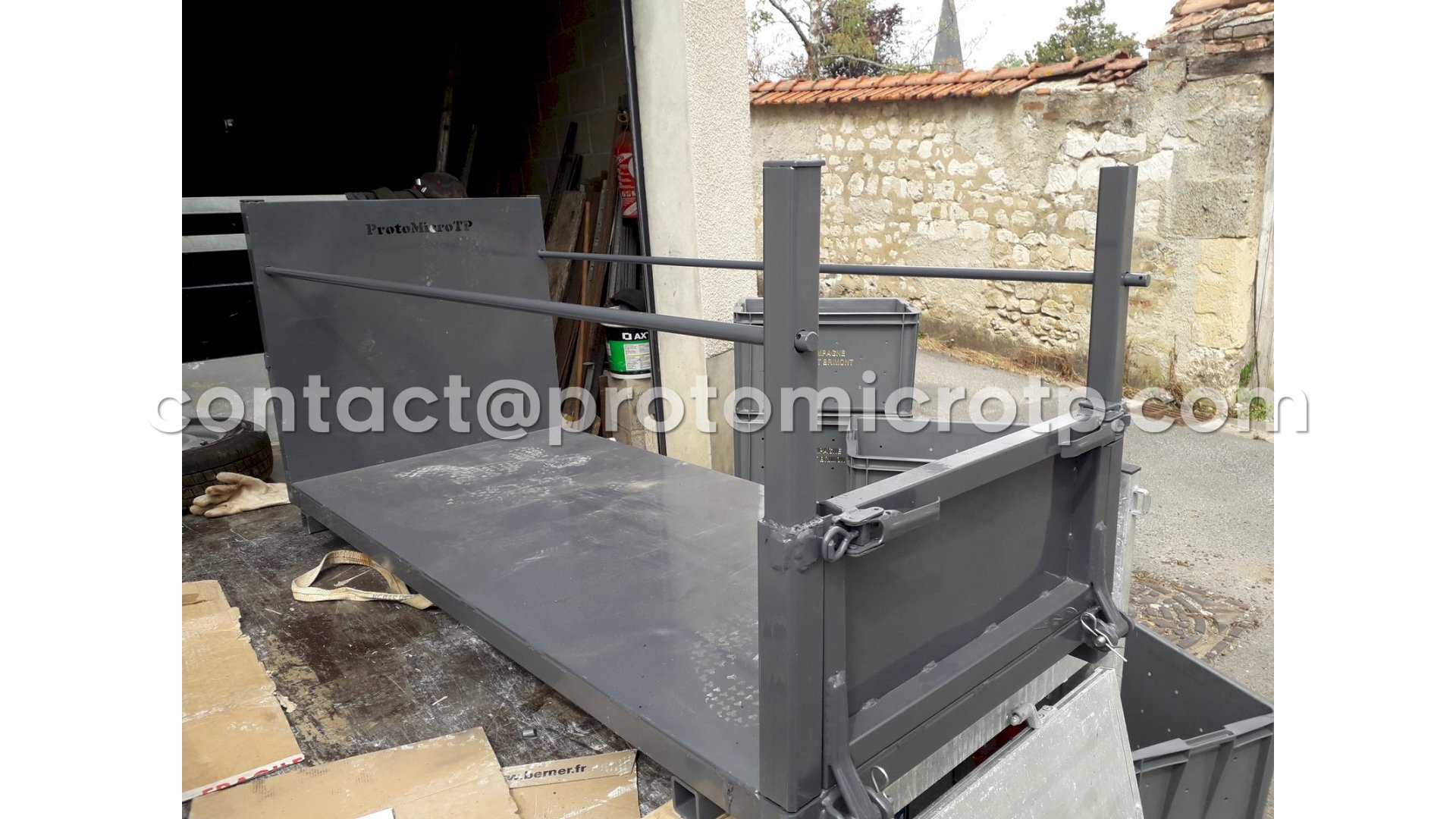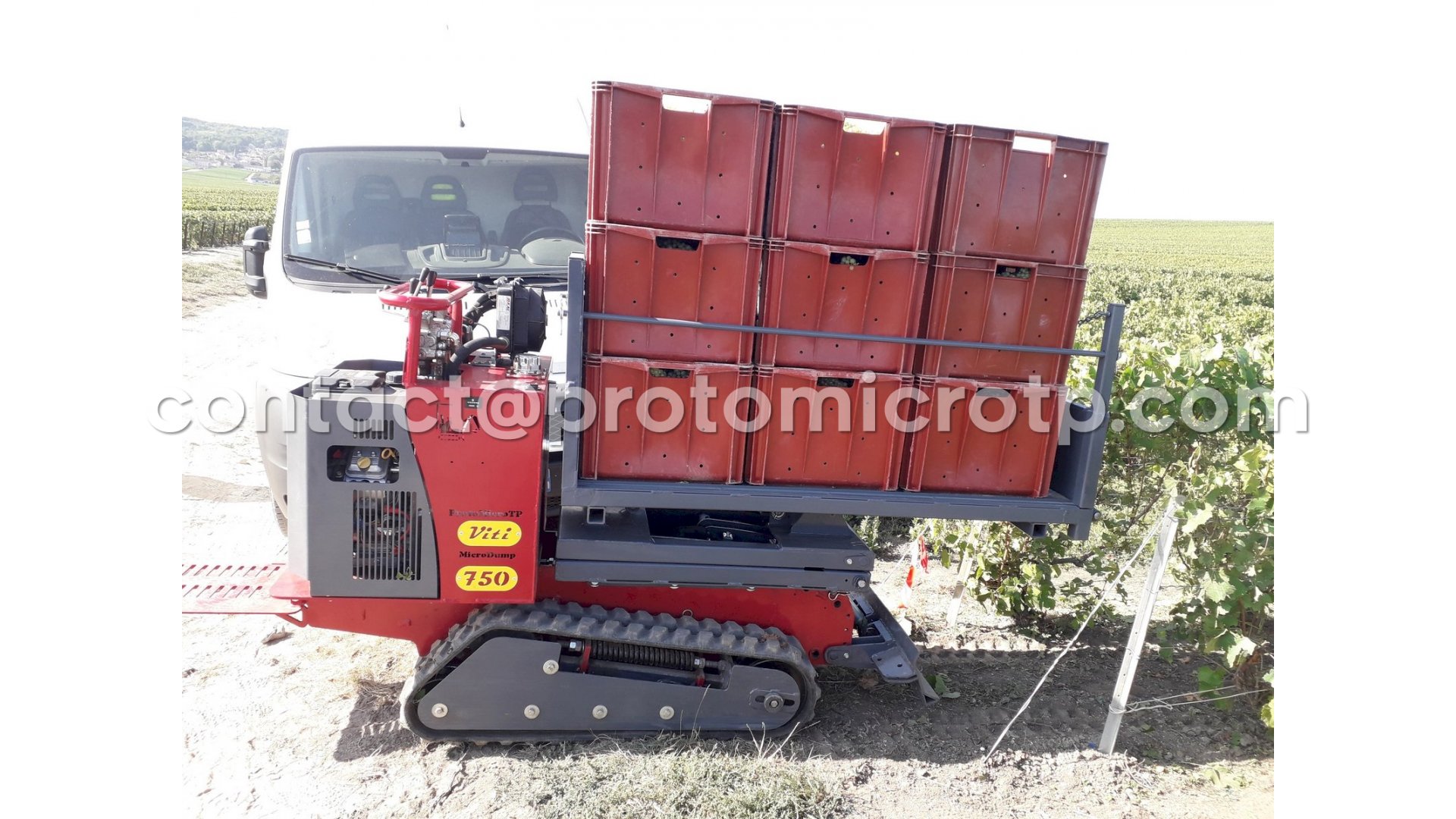 La benne plate à ridelles permet de charger des charges sur palette, transféré une charge sur palette d'un véhicule grâce à l'élévatrice optionnelle, le support porte outils viticole lui permet de réaliser des traveaux de sol dans le milieu viticole.