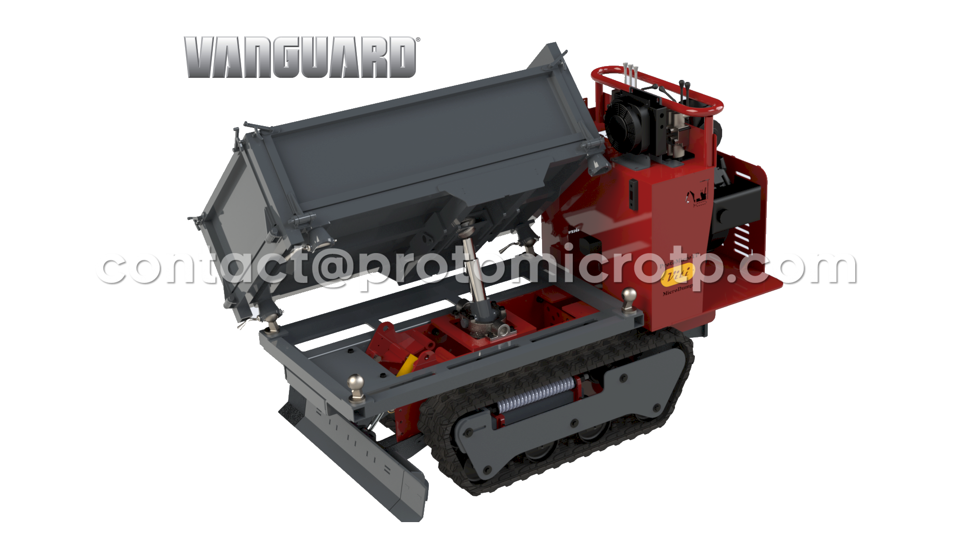 Le Dumper  750 kg  " MicroDump' 750" , est une brouette à chenilles pouvant aller sur touts types de terrains, sa capacité de charge lui permet de prendre jusqu'a 750 kg  et de déverser son contenu par bennage hydraulique, il permet de charger ou décharger des charges jusqu’a une hauteur de 1,40m grâce à son élévatrice optionnelle.