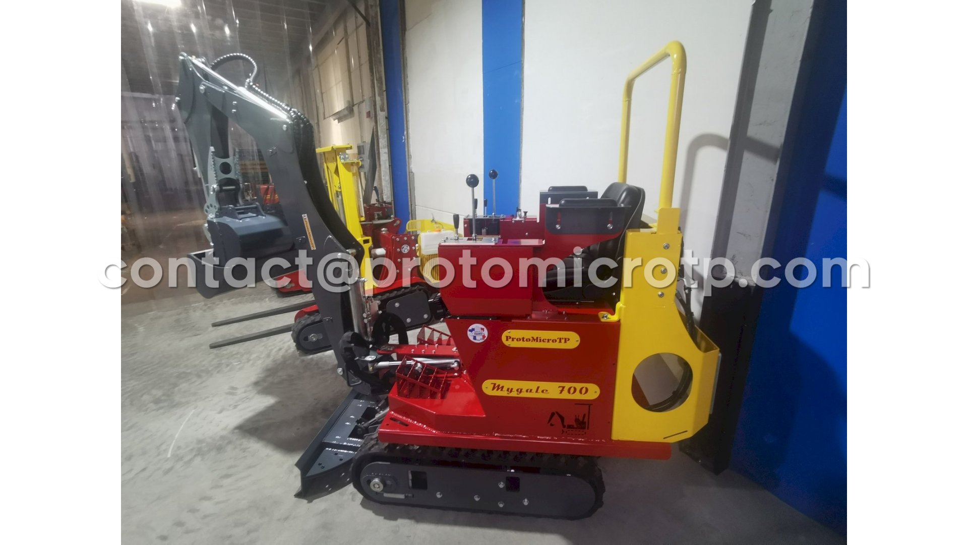 Conçue pour répondre aux besoins des particuliers et des petits professionnels, la Mygale 700 est idéale pour les travaux de terrassement et d'aménagement. Elle dispose d'un refroidisseur hydraulique pour une utilisation prolongée, même dans les régions chaudes. Elle est également équipée d'un siège grand confort avec une sécurité de coupure moteur, d'un moteur Briggs & Stratton de 15 ch, d'un arceau de sécurité Canopi, d'une ligne hydraulique d'accessoires, d'une attache rapide pour les godets, d'un pouce mécanique de série, ainsi que de deux phares de travail à LED de 100W. Avec sa force d'arrachement au balancier de 1,6 t, elle se distingue par sa puissance, rivalisant avec des machines de tailles supérieures sur le marché.