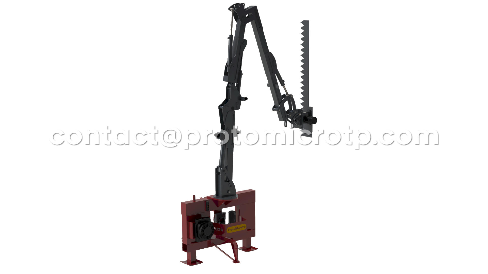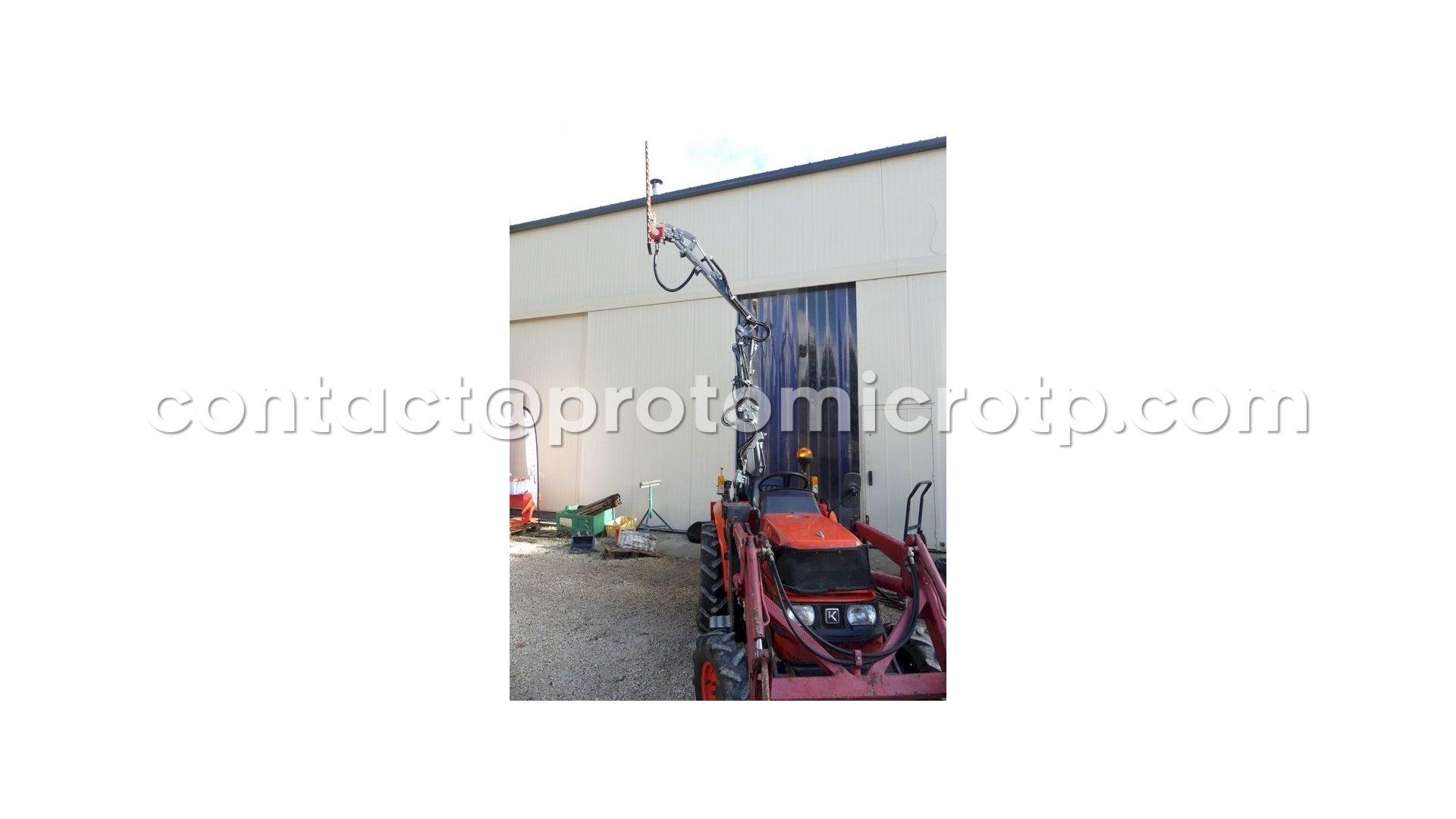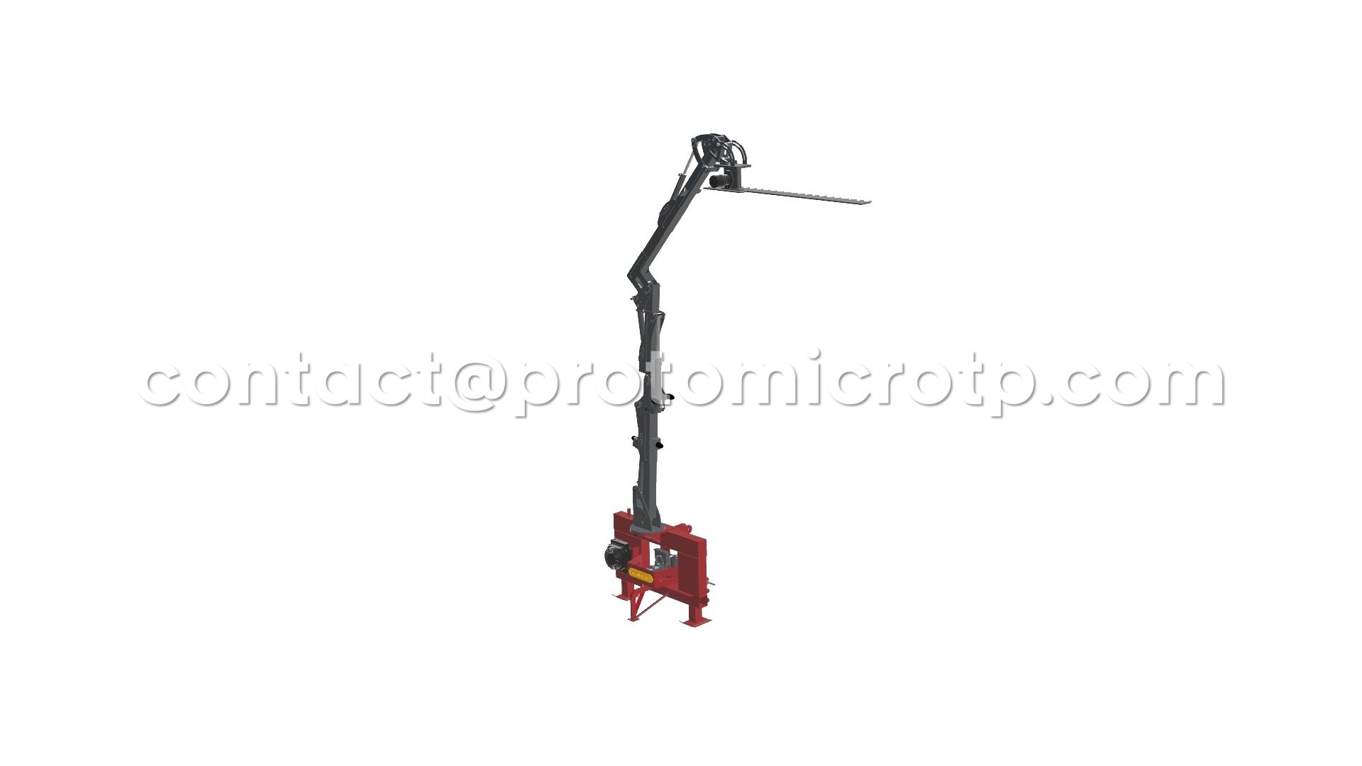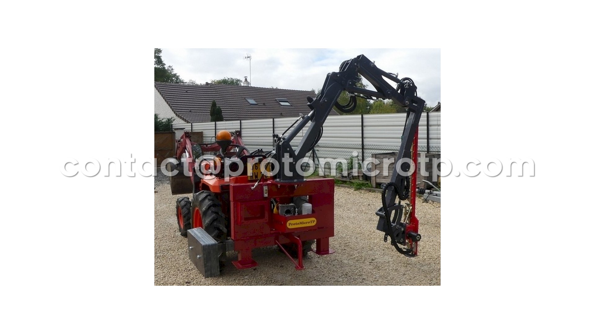 Son systeme de rotation à 180° du bras sans aucun démontage (à part 4 vis de bridage) permet de travailler à droite ou à gauche, d'etre montée sur le relevage avant ou arriere.