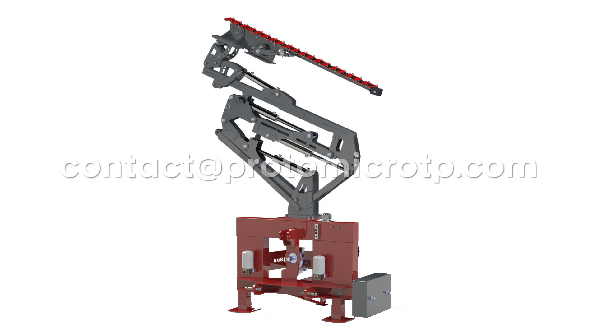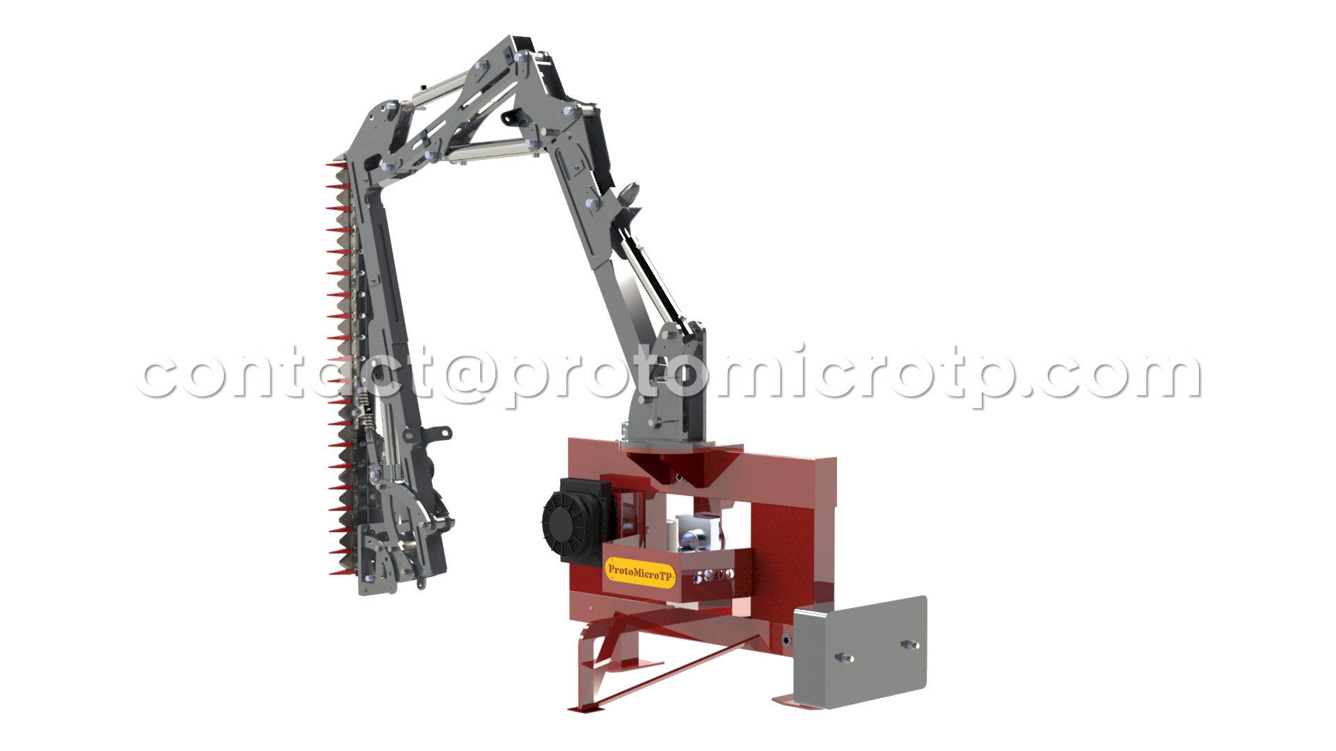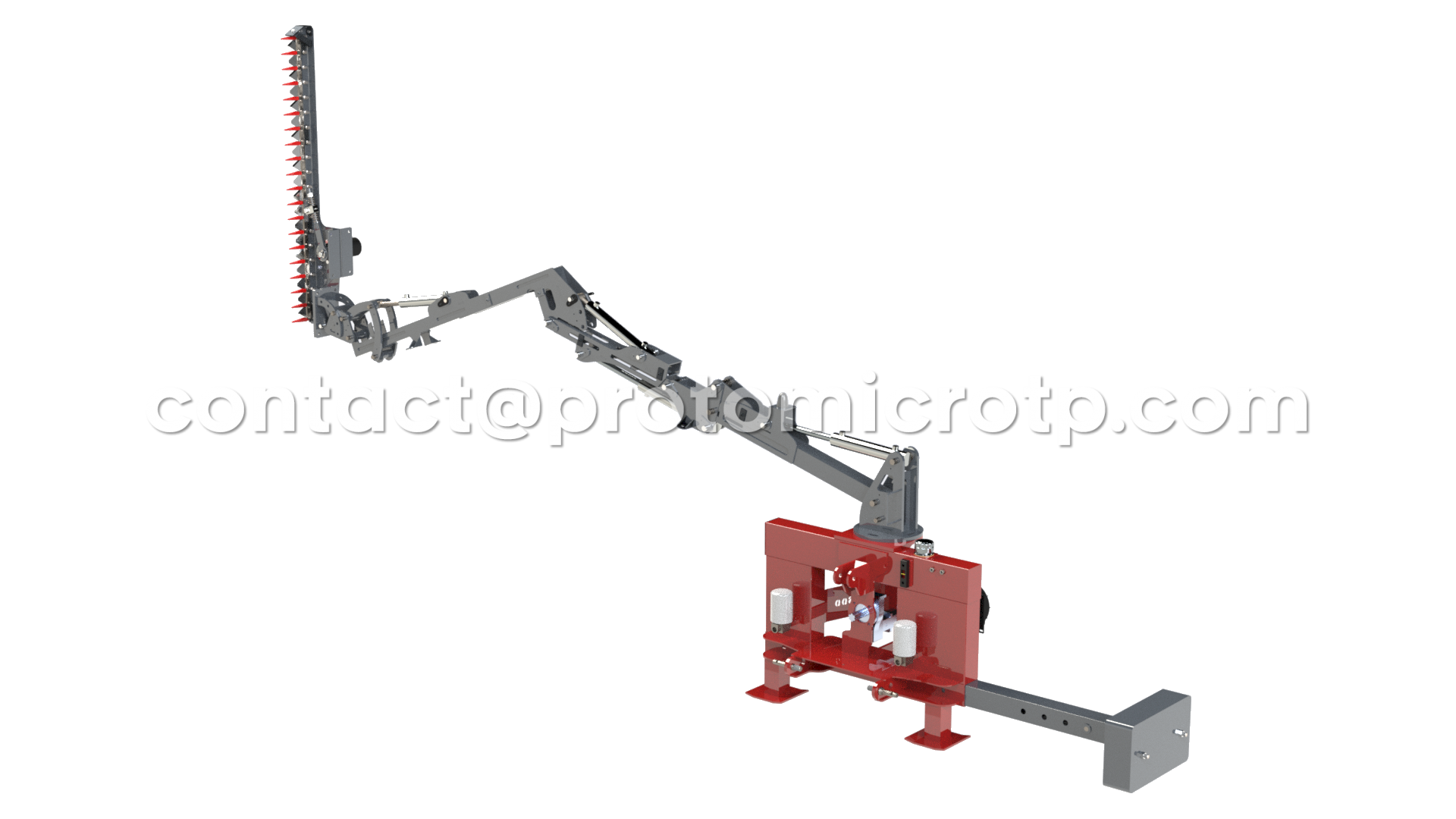 Grace à un syteme de pivot hydraulique sur le bras principal, la barre de coupe est à une distance réduite du tracteur dans toutes les positions.